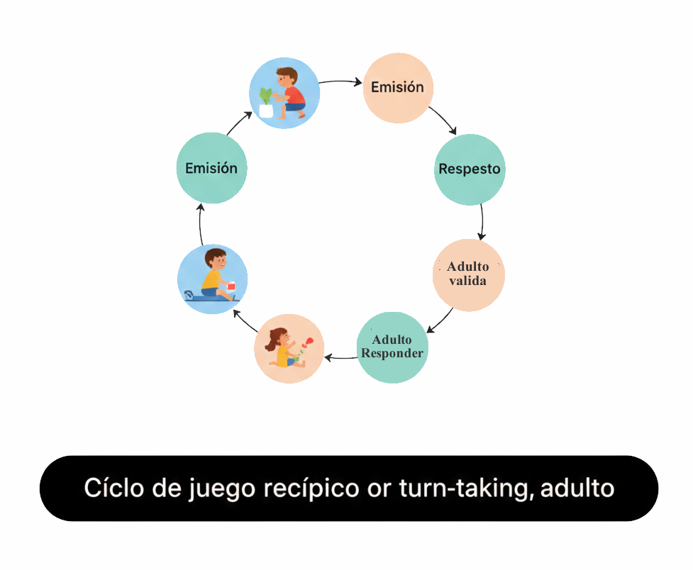 2. El Adulto Responde y Valida: Ustedes imitan el sonido con entusiasmo, devuelven la sonrisa o tocan suavemente el brazo.