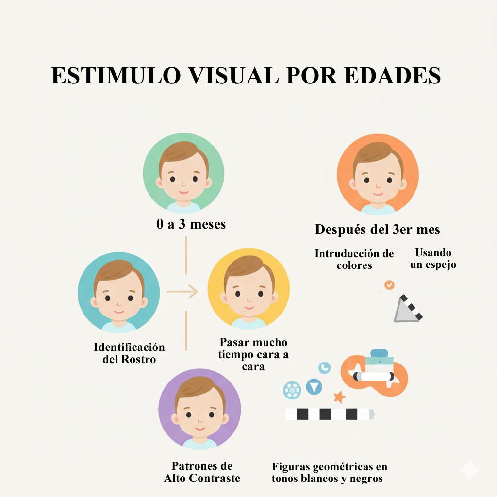 1. Estimulación Visual: Patrones, Contrastes y Espejos (0-12 Meses)