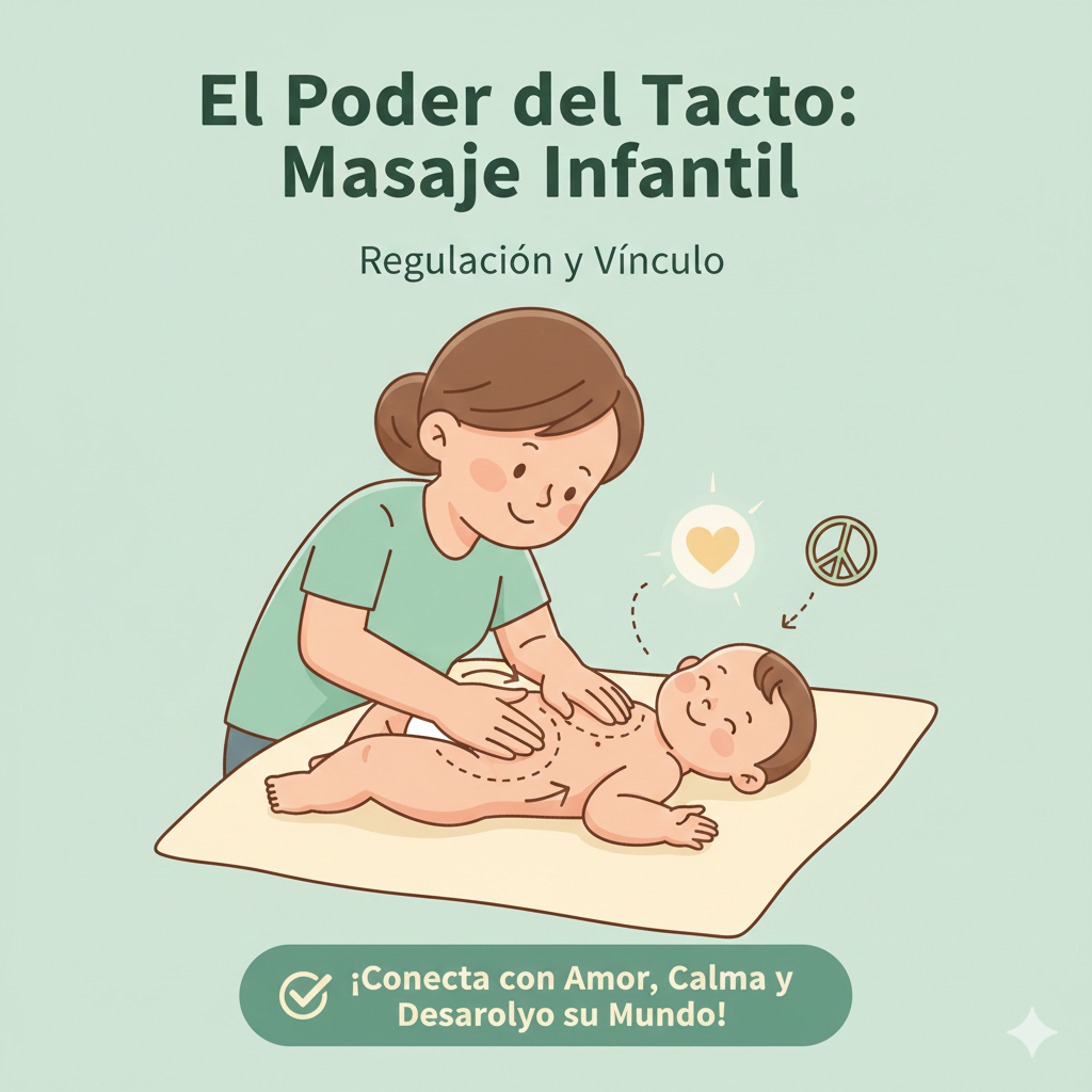 El masaje infantil es mucho más que un momento de relax. Es una práctica de estimulación táctil intencionada que promueve la calma, la conciencia corporal y la conexión. La investigación ha demostrado que el contacto piel con piel y el masaje reducen los niveles de cortisol (la hormona del estrés) y aumentan la oxitocina (la hormona del amor y el apego) tanto en el bebé como en el adulto.