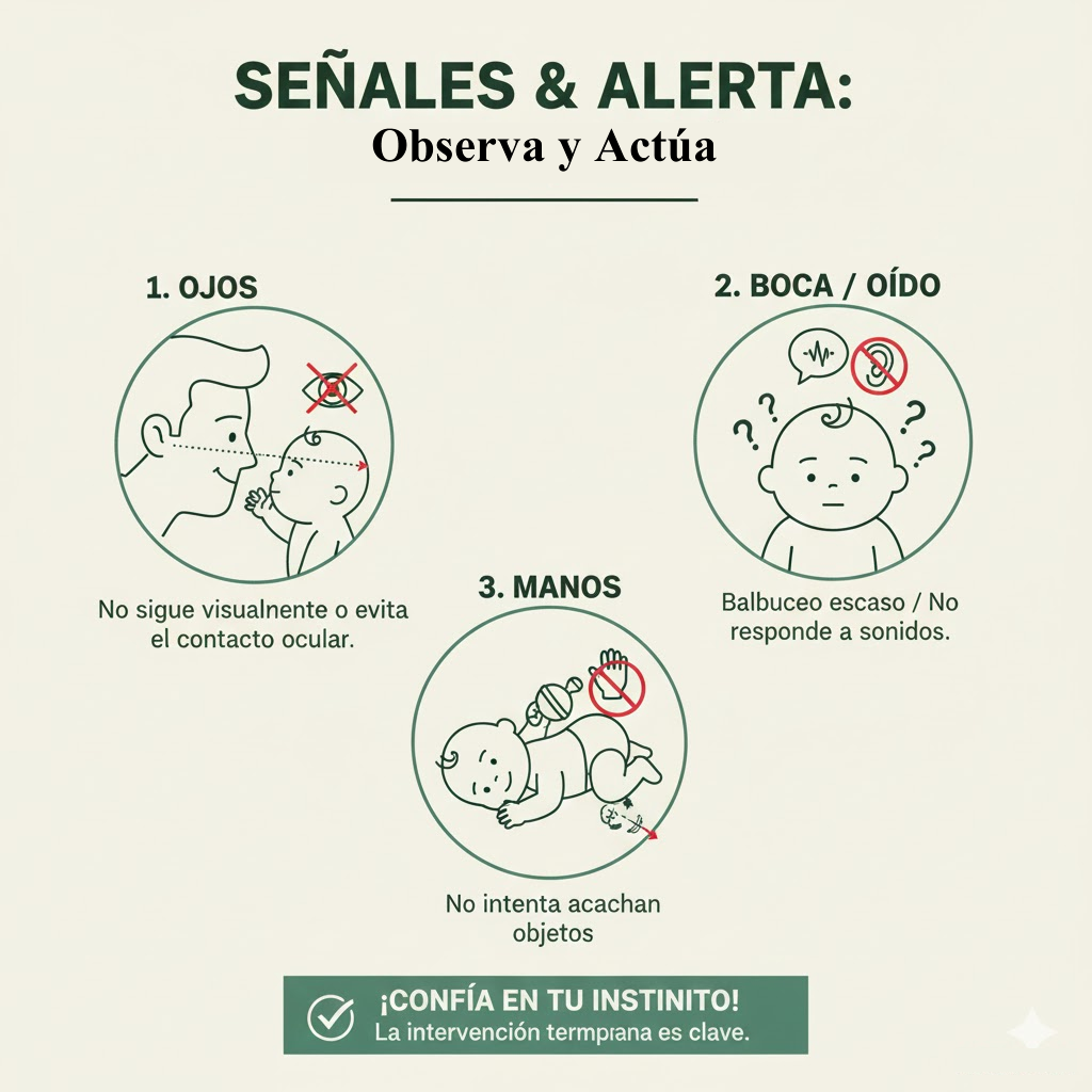 Es natural que, como padres, nos comparemos con las tablas de desarrollo o con otros bebés, generando ansiedad. Nuestro objetivo en esta lección no es crear preocupación, sino ofrecerles una brújula práctica y sin pánico para identificar esas señales que sí merecen una conversación con su pediatra o un especialista.