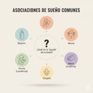 Para lograrlo, el primer paso es una autoevaluación honesta. Necesitamos identificar todas esas “ayudas” o “muletas” que tu bebé usa para pasar del estado de vigilia al sueño. No para juzgar, ¡sino para entender y planificar!