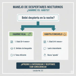 Este es el desafío más frecuente y, a menudo, el más agotador. La clave no es evitar los despertares por completo (¡recuerda, son biológicos!), sino aprender a distinguir el hambre real de la necesidad de consuelo o de un despertar por hábito, y cómo responder de una manera que consolide el sueño independiente.