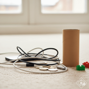 Este punto es simple pero se nos olvida: Todo lo que sea más pequeño que un tubo de cartón de papel higiénico es un peligro de asfixia. Esto incluye pilas de reloj, monedas, tapas de bolígrafos, piezas de juguetes de hermanos mayores, etc.